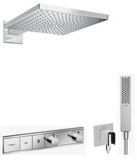 26238000, Верхний душ (Chrome) + 15380000, Термостат + 15310180, Термостат встр., с вентилем, внутряняя часть + 24320000, Ручной душ (Chrome) + 28272000, Шланг для душа (Chrome) + 26889000, Шланговое подсоединение