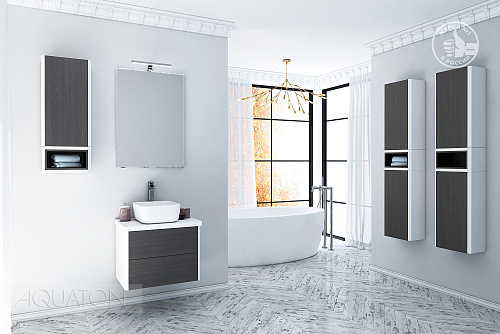 Подвесной шкафчик Брук изготовлен из влагостойкой ламинированной плиты и высококачественной МДФ, окрашен в белый цвет с высокой степенью глянца полиэфирной краской ультрафиолетового отверждения, фасад покрыт матовой пленкой в цвете дуб феррара. За фасадом расположены регулируемые по высоте полки, на которых удобно разместить все необходимые в ванной комнате принадлежности. Петли шкафа оснащены механизмом плавного довода, что обеспечивает мягкое и бесшумное закрывание дверок. Шкафчик можно использовать как отдельно, так и компонуя его с другими модулями серии.