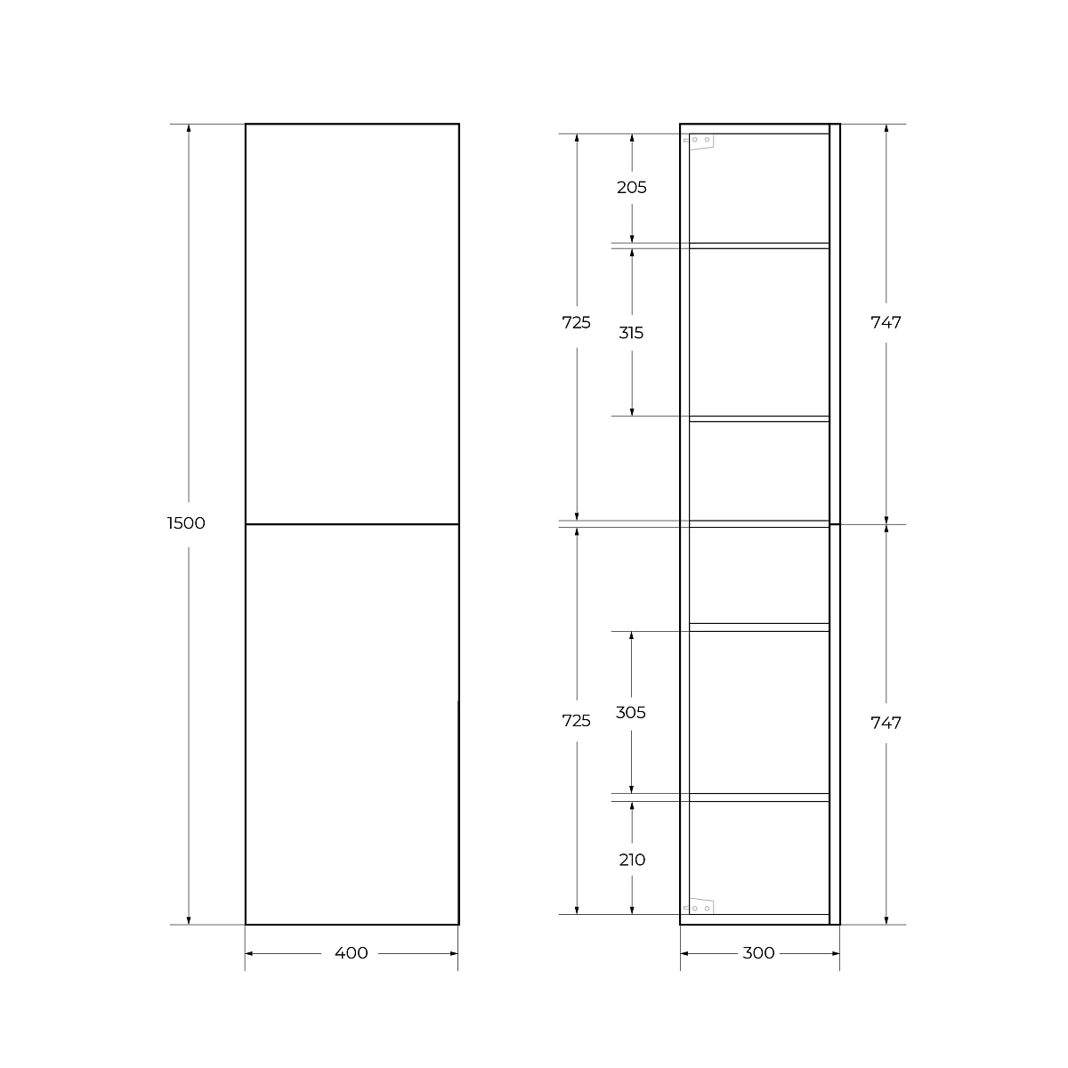 Шкаф-пенал BelBagno DUE DUE-1500-2A-SC-SAT-P