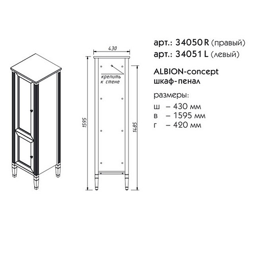 Шкаф-пенал Caprigo ALBION CONCEPT 34050R-TP812