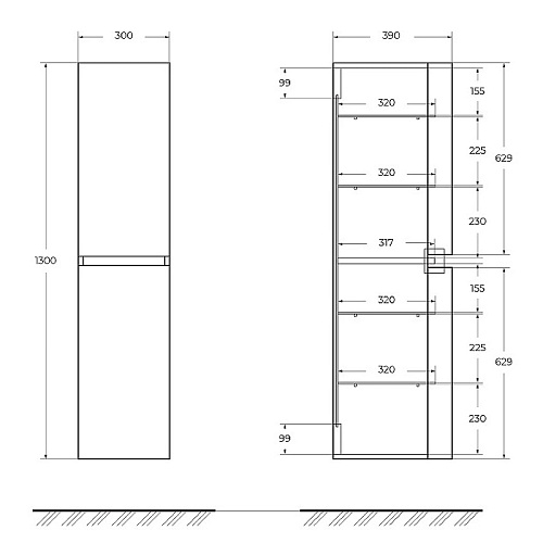 VAGUE Колонна подвесная с двумя распашными дверцами, реверсивная 44326 Grigio talpa opaco, 30x38x130