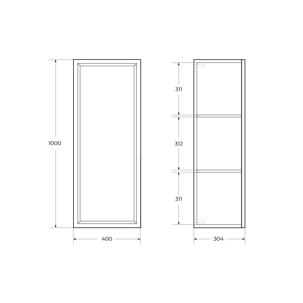 GIUBILEO Шкаф подвесной с одной распашной дверцей с доводчиками, с двумя полками, Bianco Lucido, 400x300x1000, GIUBILEO-1000-1A-SC-BL