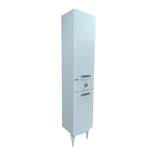 Верхняя, нижняя створки и ящик оснащены системой плавного закрывания. Фасады покрыты белой глянцевой эмалью. За каждой створкой по одной горизонтальной полке