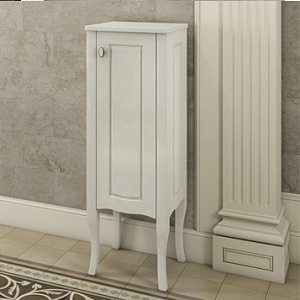 Полуколонна отличное решение для хранения разных предметов необходимых в ванной комнате. За дверцей одна горизонтальная полка. Фасады покрыты белой глянцевой эмалью. Ножки из массива дерева.