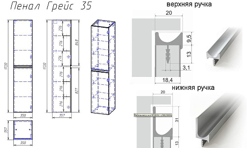 Пенал Dreja 99.0907 Grace подвесной/напольный, 35х172 см, правый, белый глянец