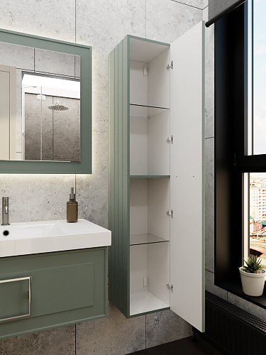 Дизайнеры LA FENICE знают, что подбор сантехники - это творческая задача. С мебелью коллекции Cubo решить задачу будет проще. Матовые фасады подвесных тумб и столешницы в различных цветовых гаммах помогут даже самому взыскательному покупателю создать индивидуальный интерьер. Изящные и утончённые фрезерованные фасады и боковины тумб в сочетании неповторимым цветом зелёный опал станут украшением любой ванной комнаты.