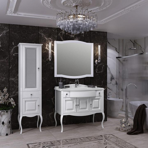 Коллекция ЛАУРА создана нашими дизайнерами в стиле Нео Классика. Коллекция представлена в двух размерах 100 см и 120 см. Фасадные детали изготовлены из массива бука. Особый способ патинирования золотой краской на фасадах придает коллекции дополнительный шарм и очарование. На тумбу из коллекции ЛАУРА можно установить мраморную столешницу с врезной накладной керамической раковиной (для размера 100 см) или раковину из литого мрамора. Особый шик коллекции добавляют золотые и серебряные ручки, инкрустированные кристаллами Swarovski.
