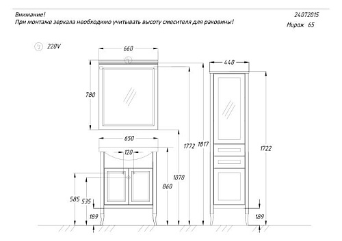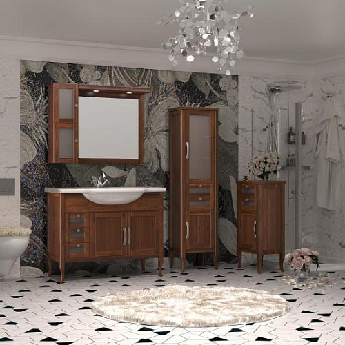 Коллекция МИРАЖ сочетает в себе элементы неоклассического стиля и современной итальянской классики. Особую уникальность мебели из коллекции МИРАЖ придают варианты отделки Светлый орех и Слоновая кость, а также оригинальные ручки. Модельный ряд коллекции МИРАЖ выполнен в двух вариантах — 100 см и 120 см, а также снабжен оригинальными дополнительными решениями для хранения: напольные комод, одностворчатый и двустворчатый пеналы, зеркала с дополнительными навесными шкафами. Створки фасадов оснащены петлями плавного закрывания.