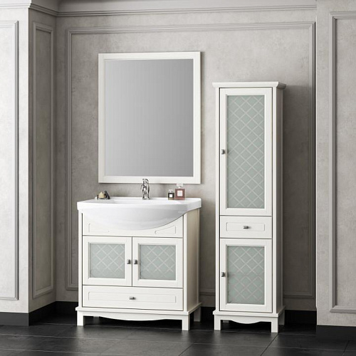 Коллекция ОМЕГА выполнена в традиционном американском стиле, которому соответствует простота линий и комфортность в использовании. Фасадные детали мебели из коллекции ОМЕГА выполнены из массива бука и украшены оригинальной ромбовидной гравировкой стеклянных витражей. Мебель для ванных комнат из коллекции ОМЕГА предлагается в качественной отделке Слоновая кость, которая доказала свои высокие потребительские качества при эксплуатации в агрессивной среде. Коллекция предлагается в различных размерах — 65 см, 75 см и 85 см. Коллекцию ОМЕГА дополняет вместительный напольный пенал. Мебель оснащена глубокими керамическими раковинами и механизмами плавного закрывания Hettich (Германия).