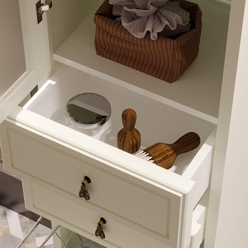 Коллекция РИСПЕКТО символизирует лучше традиции неоклассики в сочетании с необыкновенной функциональностью и простотой дизайна. Успех и уникальность коллекции формируется несколькими вариантами отделок, а также размерным рядом моделей и глубокой керамической раковиной. Завершенность стилю коллекции РИСПЕКТО придают сложные филенчатые фасады мебели. Несколько вариантов пеналов — узкий, стандартный (с бельевой корзиной) и двухстворчатый — удачно завершают комплектацию коллекции. Мебель оснащена механизмами плавного закрывания Hettich (Германия).