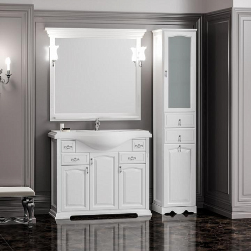 Коллекция РИСПЕКТО символизирует лучше традиции неоклассики в сочетании с необыкновенной функциональностью и простотой дизайна. Успех и уникальность коллекции формируется несколькими вариантами отделок, а также размерным рядом моделей и глубокой керамической раковиной. Завершенность стилю коллекции РИСПЕКТО придают сложные филенчатые фасады мебели. Несколько вариантов пеналов — узкий, стандартный (с бельевой корзиной) и двухстворчатый — удачно завершают комплектацию коллекции. Мебель оснащена механизмами плавного закрывания Hettich (Германия).
