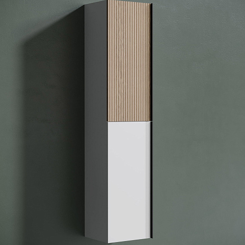 Шкаф-пенал SANCOS Delta подвесной дуб светлый/белый , две дверцы, петли с доводчиками, расположение петель R/L, ручки чёрные профильные накладные 350х300х1600 мм, арт. PDL35W