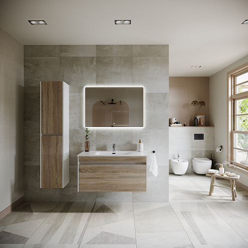 Шкаф-пенал Sancos PSM35E Smart подвесной, 35х160 см, дуб бардолино/белый