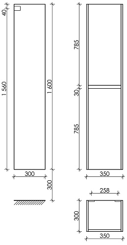 Шкаф-пенал SANCOS Smart подвесной Дуб Бардолино/белый, две дверцы, петли с доводчиками, расположение петель R/L, 350х300х1600 мм, арт. PSM35E
