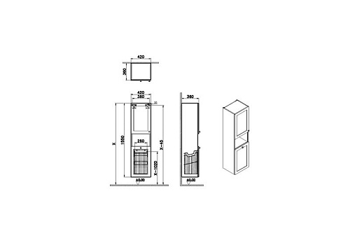 Шкаф-пенал Vitra 68522 Root Classic подвесной 42х155 см, левосторонний, MDARKBLUE (матовый темно-синий)