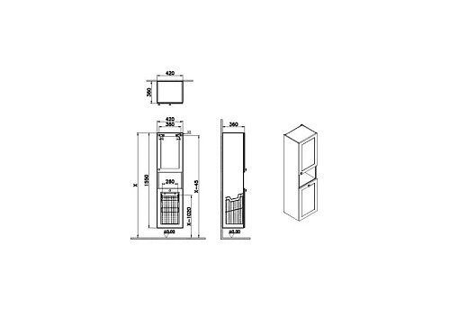 Шкаф-пенал Vitra 68529 Root Classic подвесной 42х155 см, правосторонний, MDARKBLUE (матовый темно-синий)