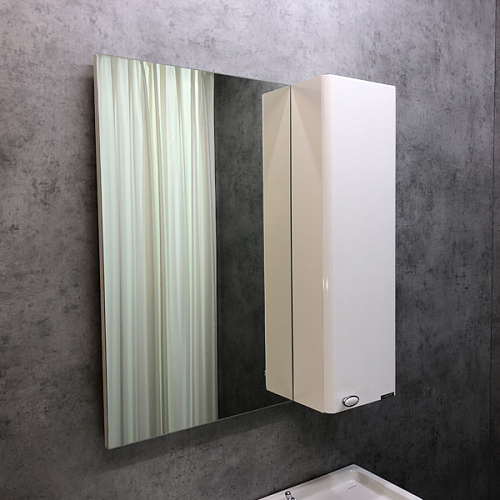 Зеркальное высококачественное полотно с амальгамой на основе серебра. Створка оснащена петлями с плавным закрыванием. За створкой две горизонтальные полки. Зеркало универсальное - может быть подвешено в правом или левом варианте. Отверстие под ручку размечено, но не просверлено.