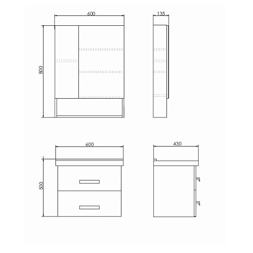 Зеркальное высококачественное полотно с амальгамой на основе серебра. Створки оснащены петлями с плавным закрыванием. Высококачественное зеркальное полотно с амальгамой на основе серебра. Обе боковые створки зеркала открываются наружу. За широкой створкой две горизонтальные полки, за узкой одна. На нижней внешней полке можно расположить невысокие принадлежности для умывания.