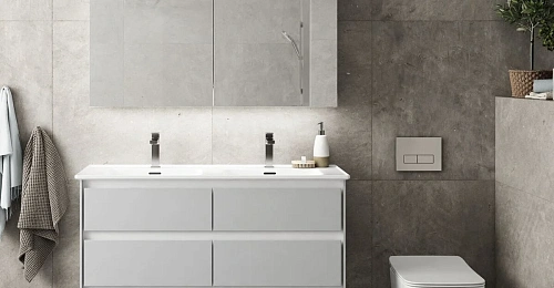 Оснащение Внутреннее косметическое зеркало, магнитный держатель, выключатель, розетка для бритвы, регулируемая стеклянная полка, интегрированная нижняя светодиодная подсветка, самоклеющиеся металлические ручки, механизм доводчика, крепления.