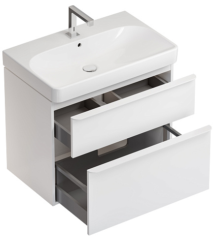 Шкафчик под раковину Geberit Smyle Square 500.353.00.1 с двумя выдвижными ящиками, для раковины 75 см, белый глянец