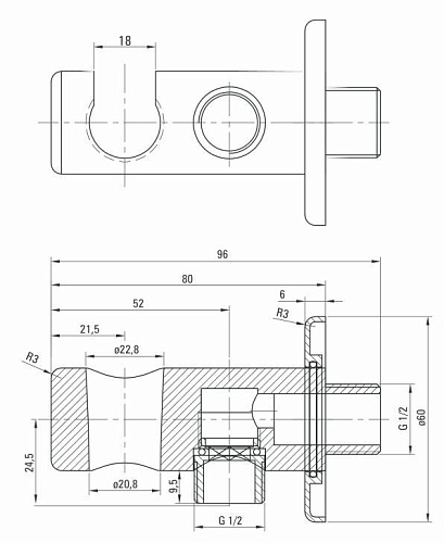 Кронштейн Deante NAC_N51K Cascada для подключения шланга Round, с держателем для лейки, Nero (черный)