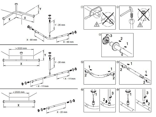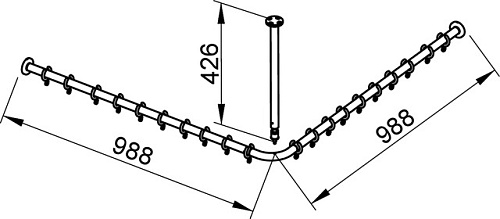 Оснащение Два настенных крепления, две штанги для душевой занавески 900 мм, штанга угловая 90° для квадратных поддонов, опора к потолку 400 мм, две упаковки колец для занавески, белые (количество в упаковке: 10 шт.).