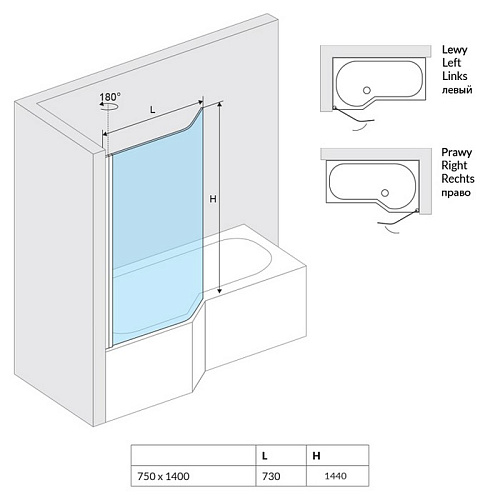 - Стекло 6 мм; - Подъемный шарнир; - Покрытие Clean Control; - Профиль - хром; - Поворот ограждения на 180 градусов;