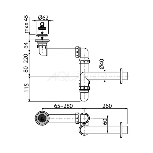 Сифон Акватон ZRU9307585 AlcaPlast для раковин, пристенный, экономящий пространство, белый
