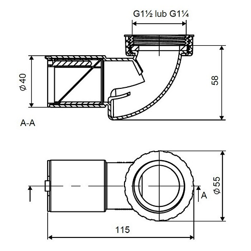 - используется сухой сифон с пропускной способностью 36 л/мин;