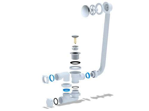 Оснащение донный клапан клик-клак, слив-перелив, сифон П-образный с ревизионной гайкой