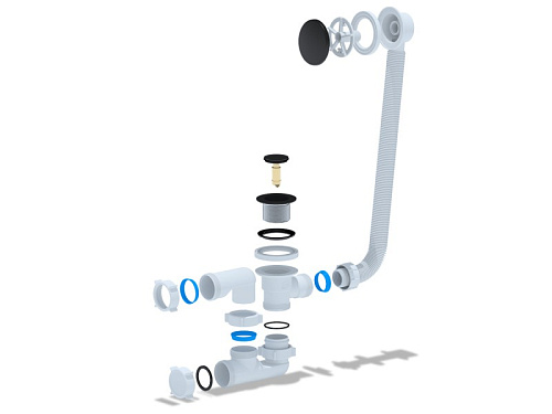 Оснащение донный клапан клик-клак, слив-перелив, сифон П-образный с ревизионной гайкой