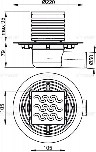 Сливной трап AlcaPlast APV102 105 x 105,50