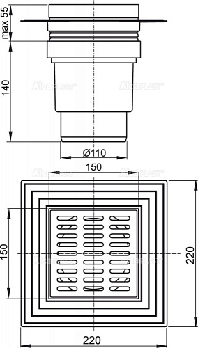 Сливной трап AlcaPlast APV11 150 x 150,110