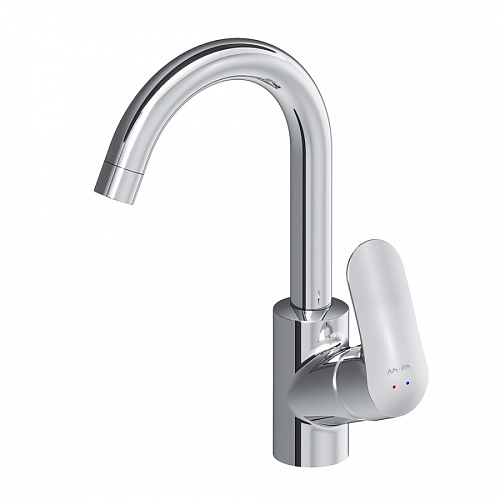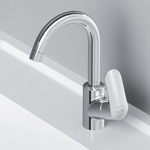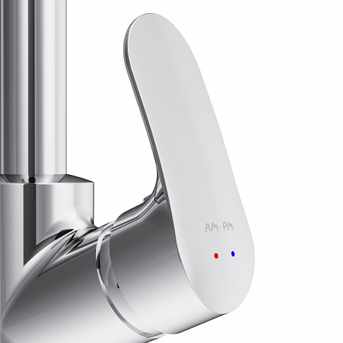 Впервые модный дизайнерский смеситель в доступном сегменте: ультрамодный стиль Dynamic Organic — природные формы в сочетании с четкими линиями доведенными до совершенства человеком. Дизайн в котором учтены все детали: благодаря уникальной форме ручки капли воды скатываются предотвращая образование налета а не высыхают на поверхности. Эксклюзивная разработка: специально спроектированный для АМ.РМ керамический картридж SoftMotion 35 мм обеспечивает оптимальную регулировку температуры а также позволяет выдерживать любые перепады давления. Высокий излив придает смесителю утонченный вид и идеально подойдет для раковины с глубокой чашей а благодаря обширной зоне движения ручки управлять температурой воды еще проще.