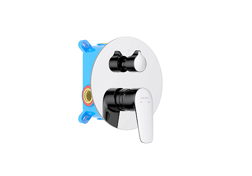 смеситель из латуни с установочной коробкой на 2 потребителя; ручка из цинкового сплава; картридж citec 35 мм, испания; декоративная пластина 3мм из нерж.; дивертор - керамический картридж
