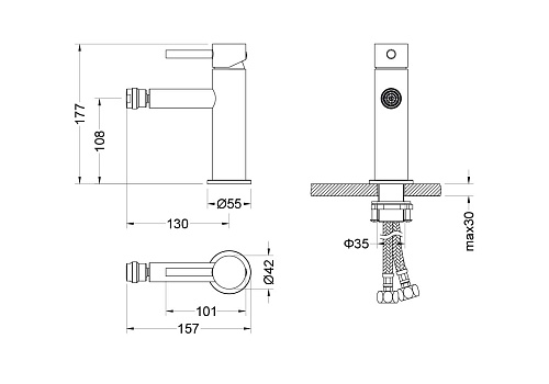 Оснащение 1. Смеситель 2. Гибкая подводка 60см 3. Монтажный комплект