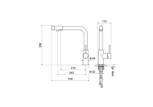 Смеситель Aquatek AQ1386MB Европа для кухни с подключением к фильтру питьевой воды, черный матовый
