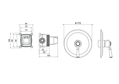 смеситель из латуни с установочной коробкой на 1 потребителя; ручка из цинкового сплава; картридж citec 35 мм, испания; декоративная накладка толщ. 1,2мм из нерж.