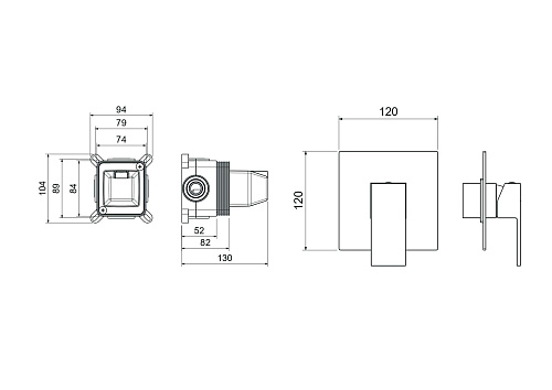 смеситель из латуни скрытого монтажа; ручка из цинкового сплава; картридж citec 35 мм, испания; декоративная накладка толщ. 3мм из нерж.