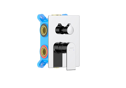 смеситель из латуни с установочной коробкой на 3 потребителя; ручка из цинкового сплава; картридж citec 35 мм, испания; декоративная пластина 3мм из нерж.; дивертор - керамический картридж
