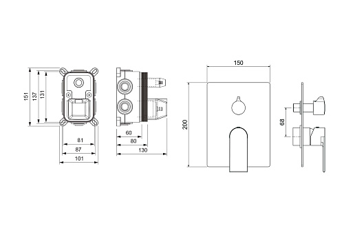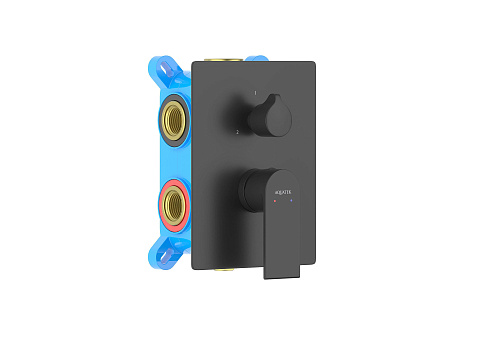 смеситель из латуни с установочной коробкой на 3 потребителя; ручка из цинкового сплава; картридж citec 35 мм, испания; декоративная пластина 3мм из нерж.; дивертор - керамический картридж