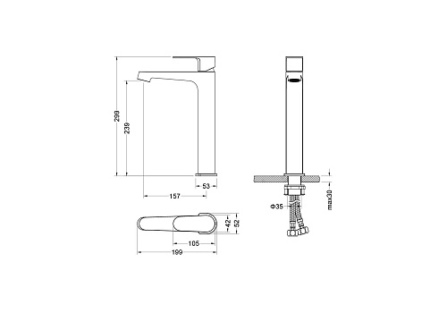 Оснащение 1. Смеситель 2. Гибкая подводка 60см 3. Монтажный комплект 4. Слив-перелив и донный клапан в комплект не входят