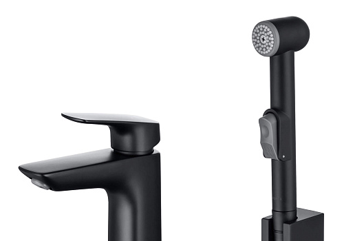 Смеситель Aquatek AQ1012MB Вега для раковины, с гигиеническим ручным душем, черный матовый