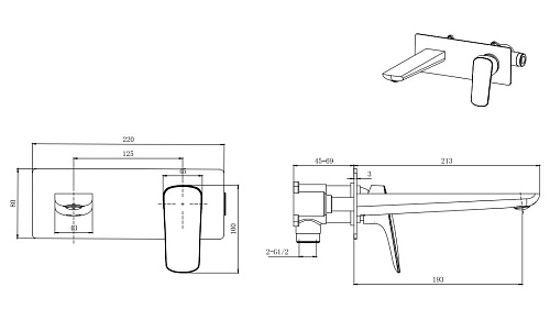Смеситель Aquatek AQ1013CR Вега для раковины, настенный (внешняя и скрытая часть), хром