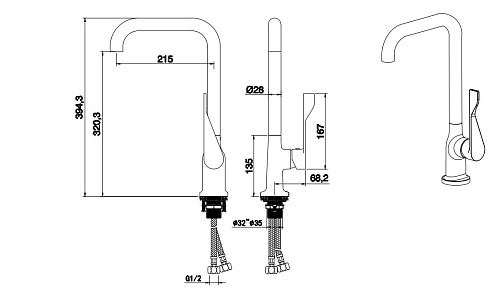 Оснащение 1. Смеситель 2. Гибкая подводка 60см 3. Монтажный комплект 4. Слив-перелив и донный клапан в комплект не входят