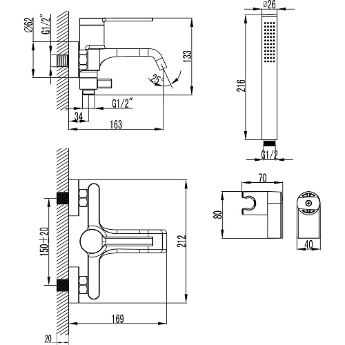 Смеситель Azario AZ-VRZ2338326PA Vincente для ванны, черный