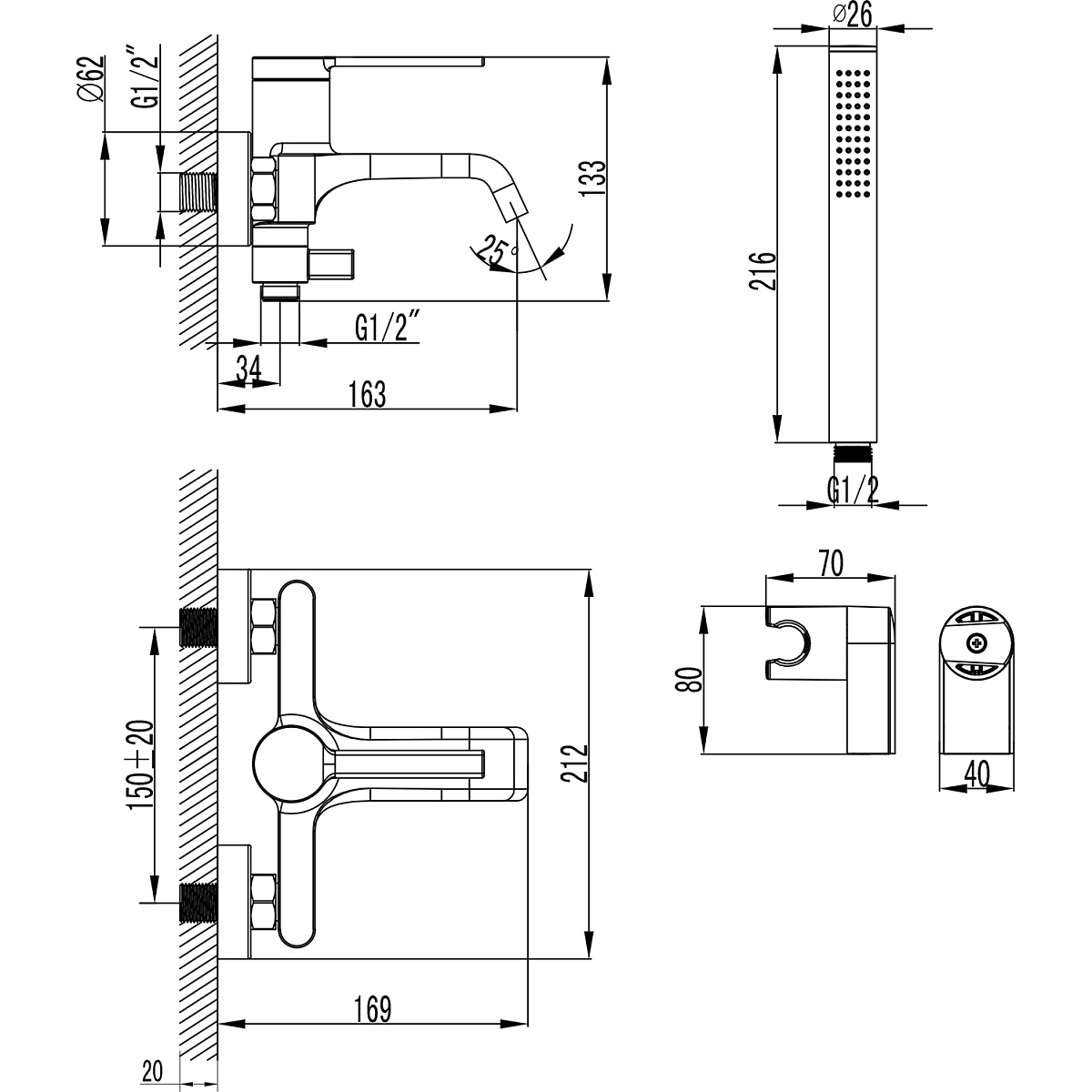 Длина душевого шланга, см 150