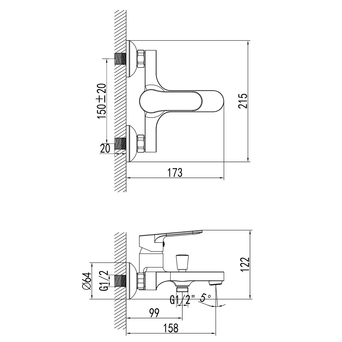 Смеситель Azario AZ-WWK238155C Elvis для ванны, хром