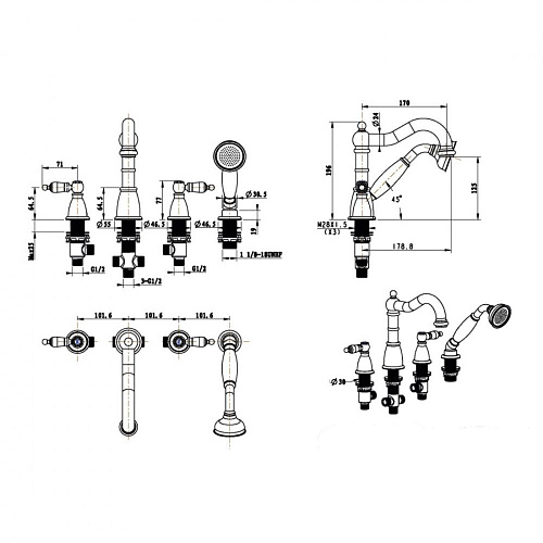 Смеситель врезной 4отв. ROYAL бронза