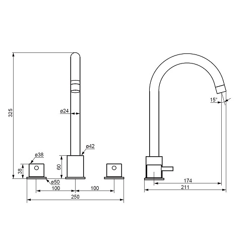 Смеситель Damixa 360200300 Scandinavian Pure для умывальника, монтаж в столешницу, трёхсекционный, черный матовый